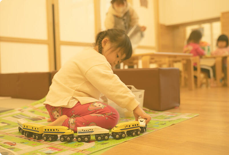 子どもたちや保育士にとって、園に行く毎日がワクワクすればするほど、色々なことに前向きにチャレンジすることができるようになります。保育園をそんな空間にするために、園ごとのオリジナルキャラクターや内装など世界に一つだけの空間作りを行っています。また、子どもたちは与えられた保育をこなす時間ではなく、子ども自身の興味を主体にした遊びができるように、玩具の選定や空間作りを行っています。